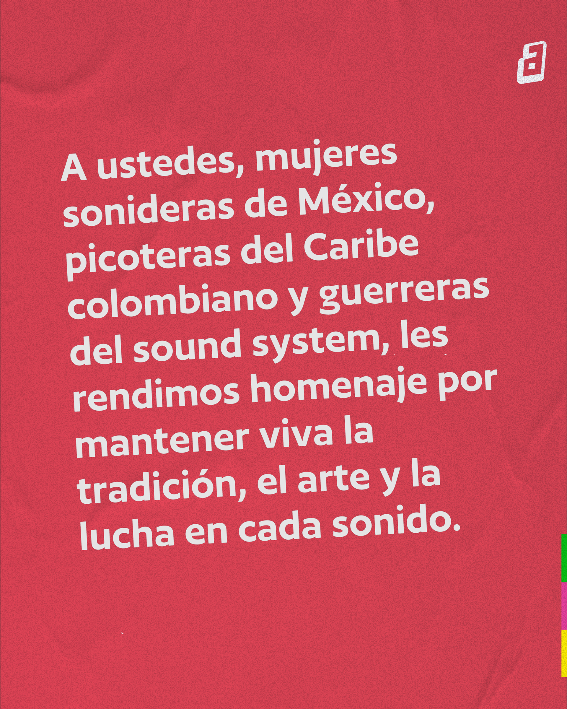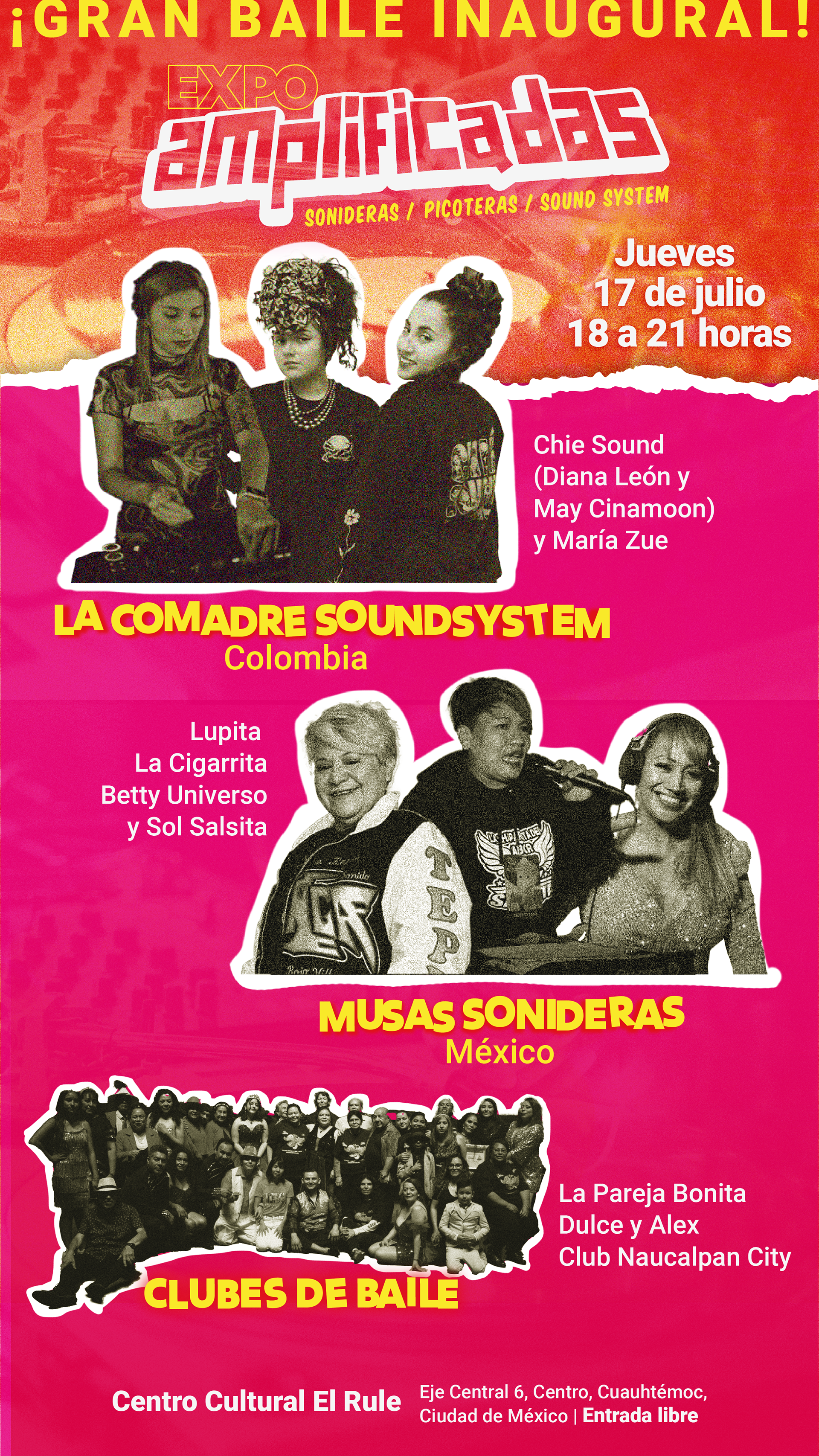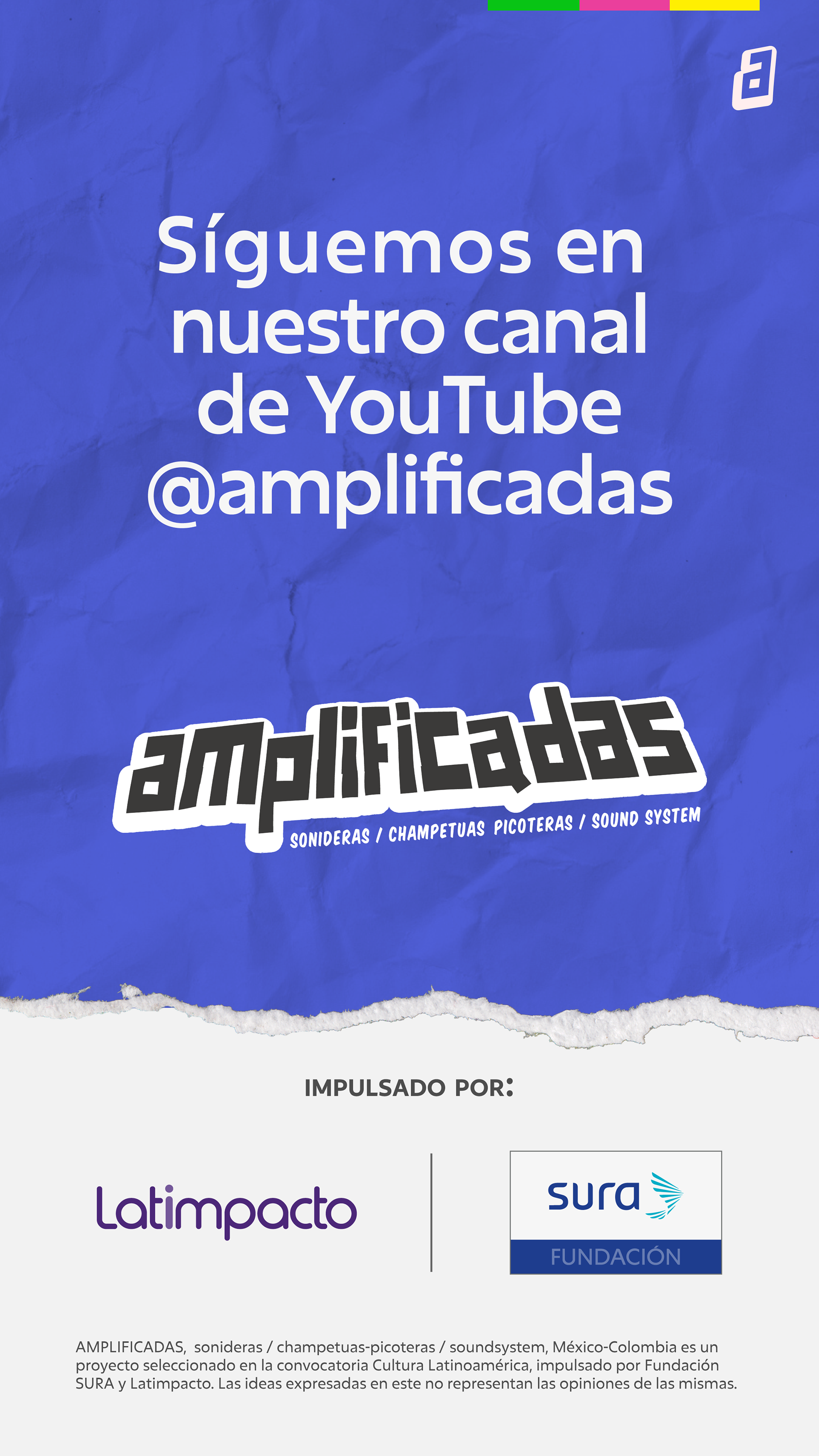 Amplificadas es una colaboración de Fundación La Comadre (Colombia) y la colectiva Musas Sonideras (México) que nace con el propósito de explorar, visibilizar y fortalecer las conexiones culturales entre la cultura sonidera de México, la cultura picotera y la escena sound system de Colombia. En el centro de esta iniciativa están las mujeres que participan de estos movimientos, recreando y sosteniendo sus patrimonios culturales y al tiempo que van transformando sus contextos.